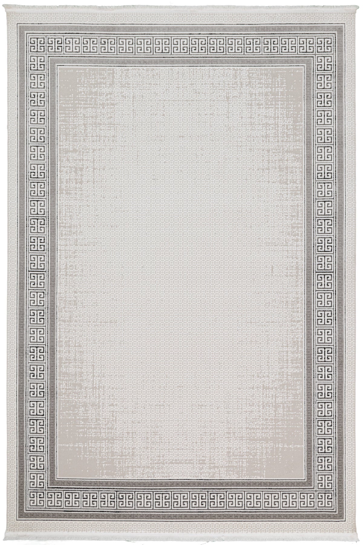 Alvin KlassLjus är en modern tolkning av klassiska former. Den ljusa basen och geometriska kantdesignen i grekisk nyckelstil skapar en balanserad och sofistikerad look. Mattans subtila textur ger en diskret livfullhet som kompletterar både minimalistiska och traditionella hem.