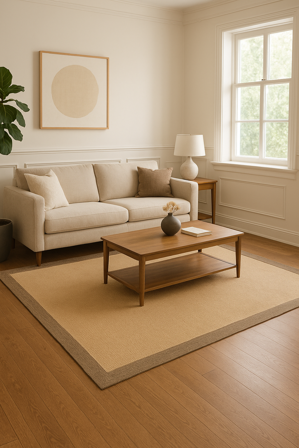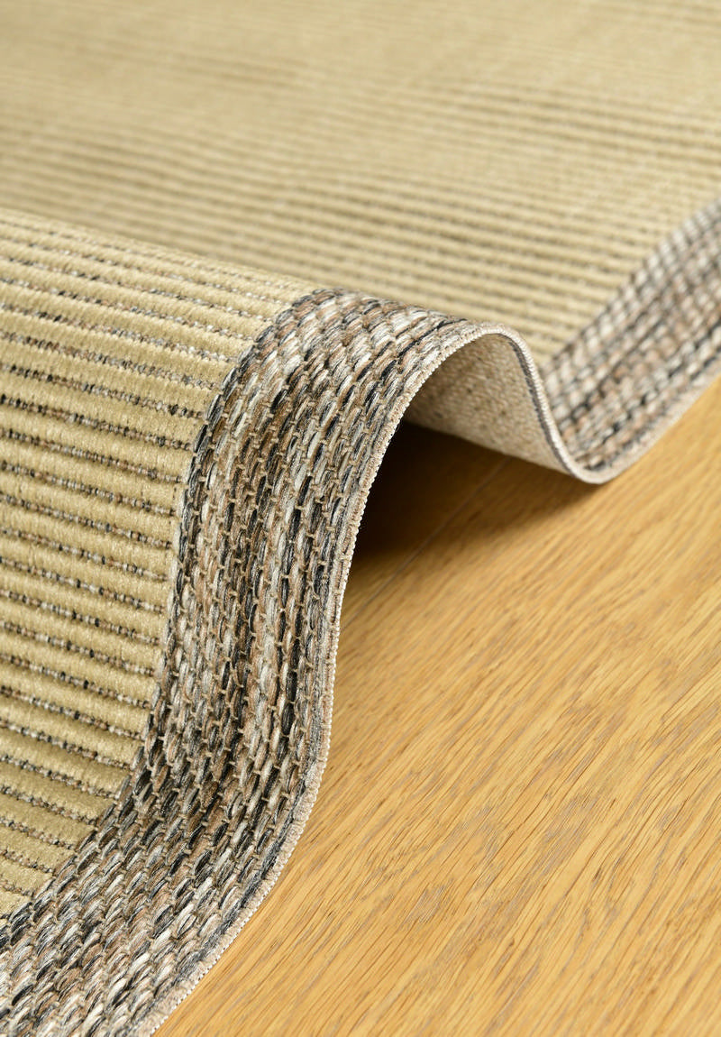Asia Sand – Stilren Vävd Matta i Beige Toner med Kontrastkant i Naturbrunt