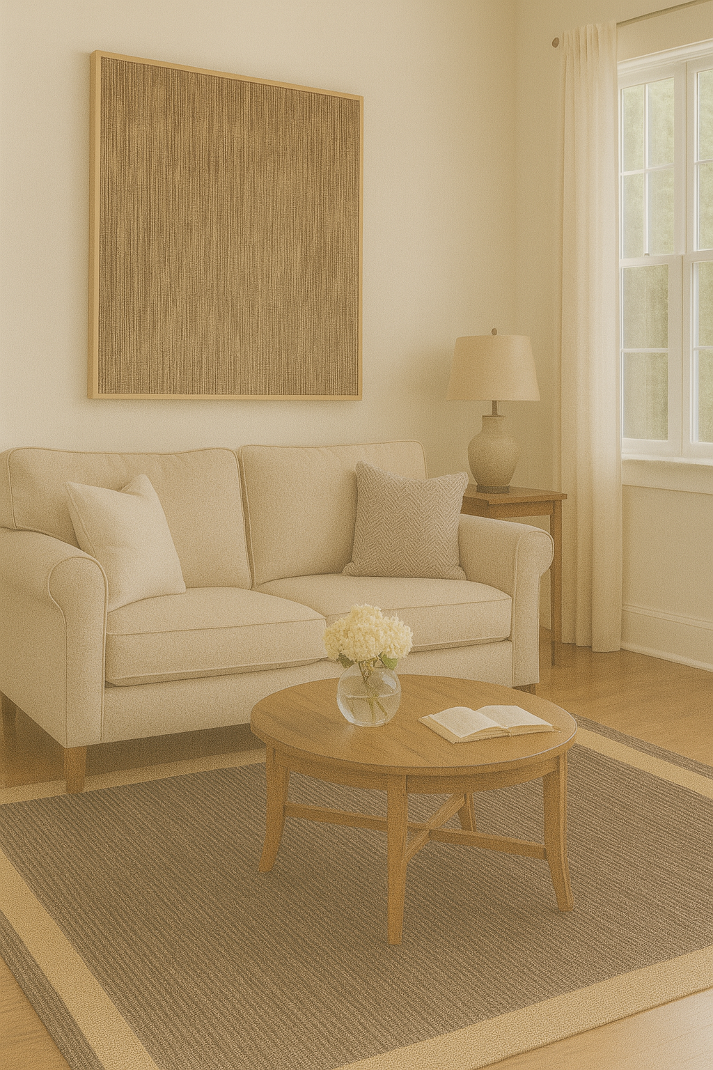 Picasso Sand - Ljus och stilren matta med varm sandfärgad ram