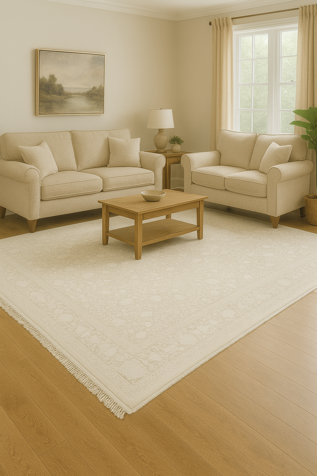 Picasso Sand - Ljus och stilren matta med varm sandfärgad ram