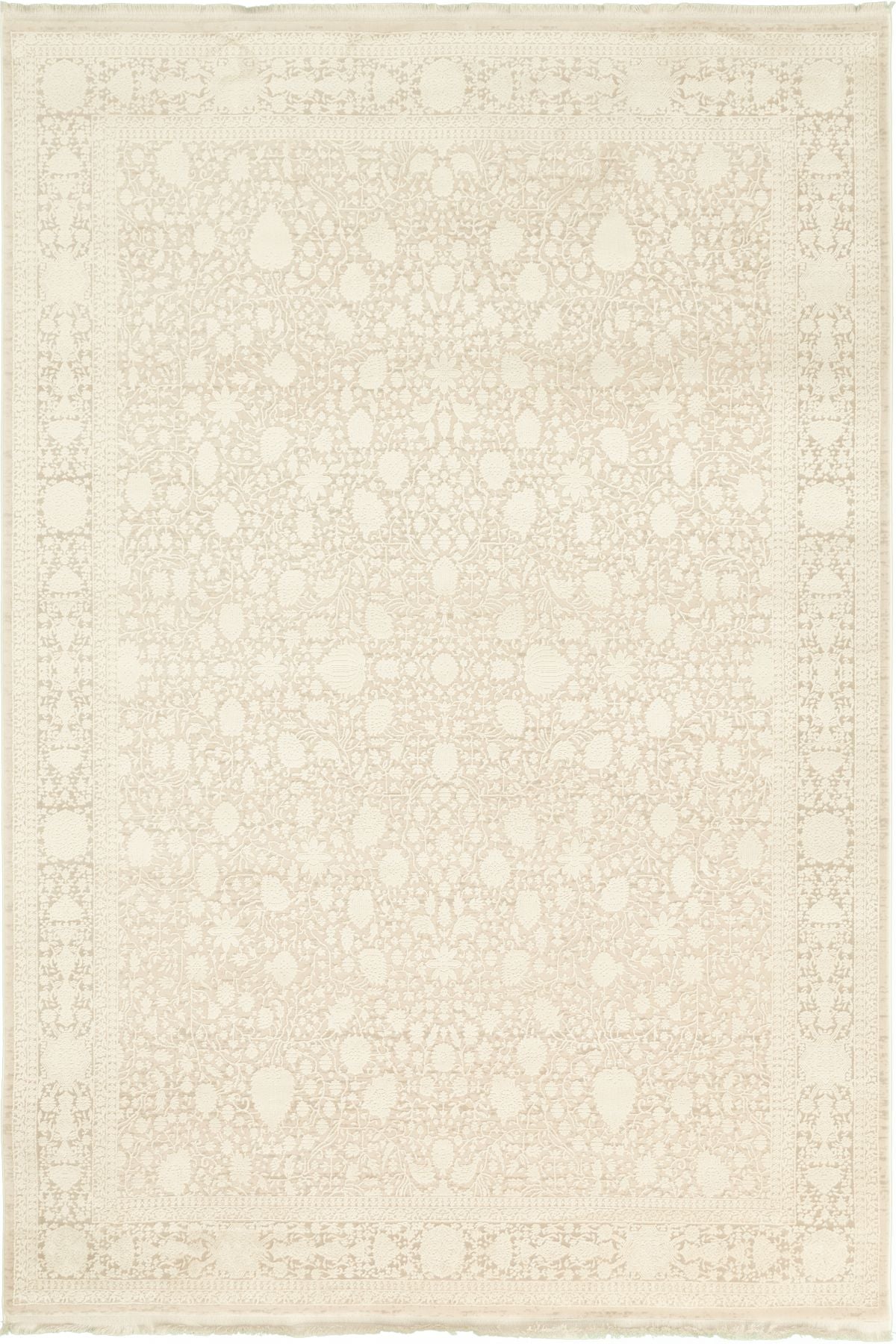 Picasso Pärlvit - Elegant ljus matta med pärlvit ram i diskret mönster