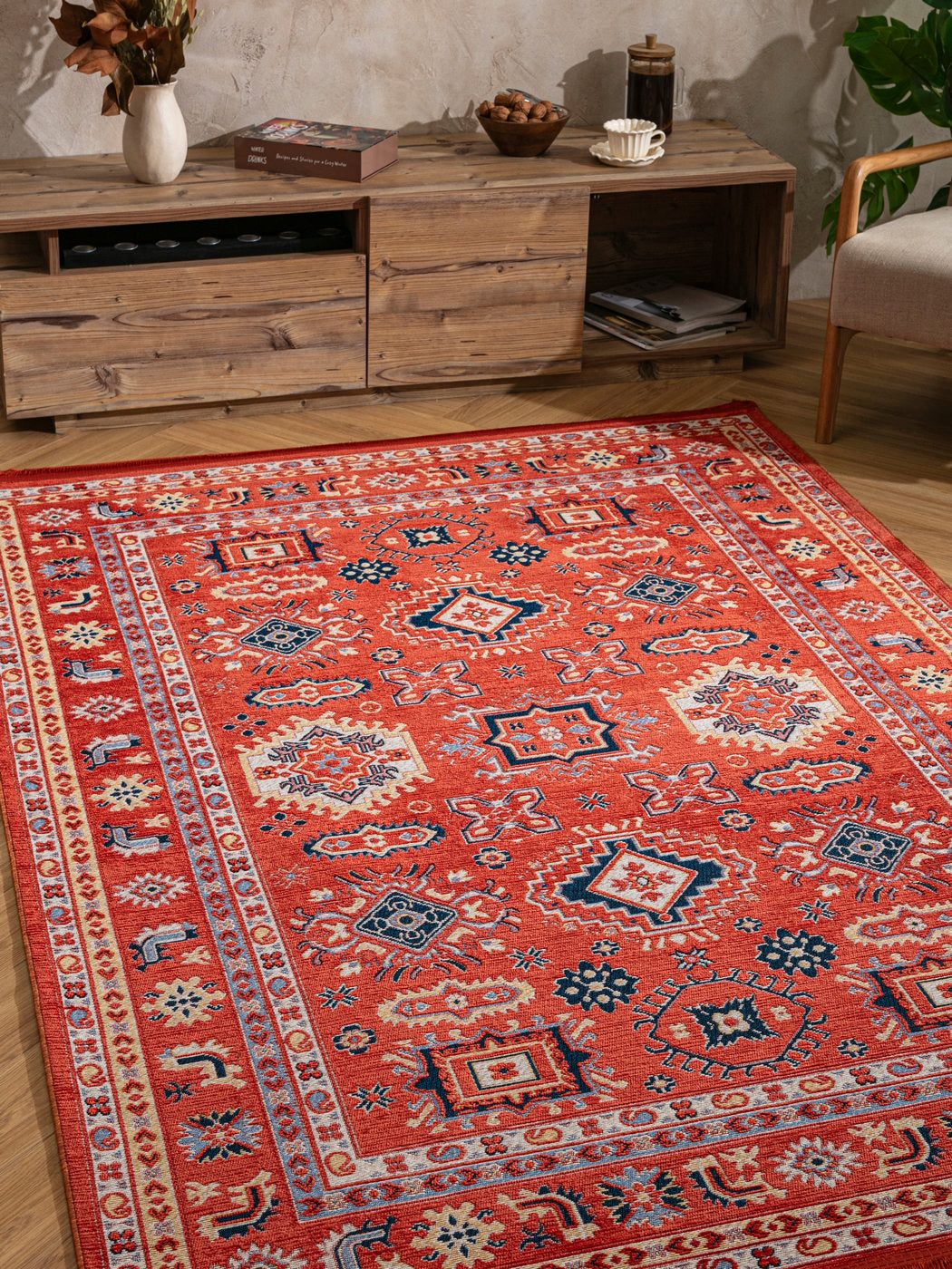 Kütahya Elegans är en matta där traditionellt arv möter nutida uttryck. De intrikata, symmetriska mönstren i varma röda och beige toner berättar en historia från Anatoliens hjärta – perfekt för dig som söker karaktär, värme och kultur i din inredning.