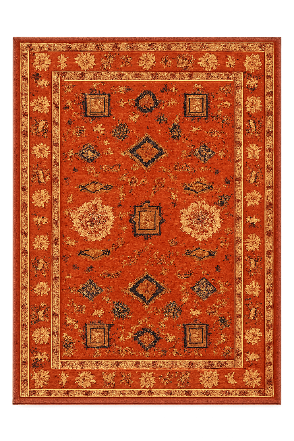 Den klassiska kompositionen, inspirerad av osmanska och turkiska designtraditioner, ger mattan en tidlös aura som passar lika bra i moderna som i mer traditionella hem.