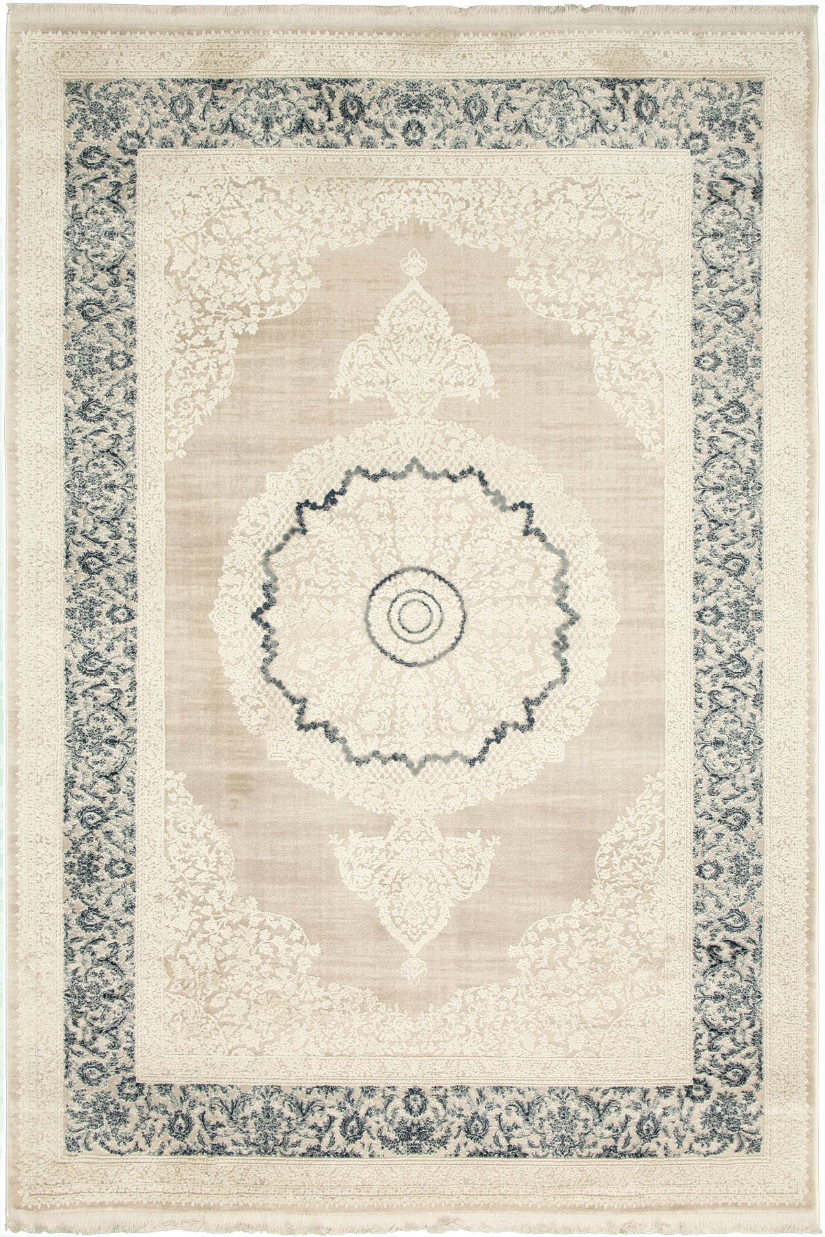 Picasso Pärlvit - Elegant ljus matta med pärlvit ram i diskret mönster
