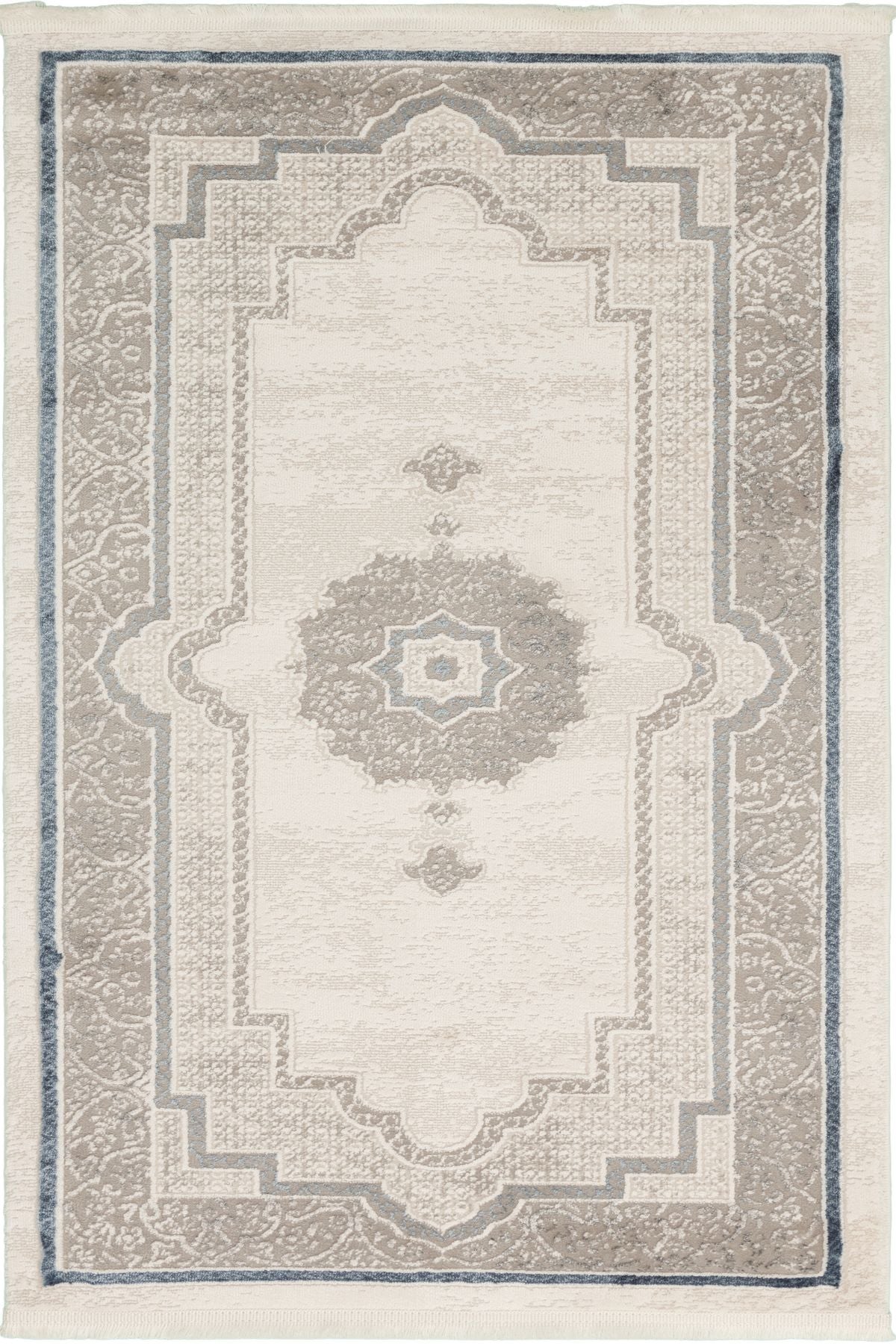 Picasso Pärlvit - Elegant ljus matta med pärlvit ram i diskret mönster