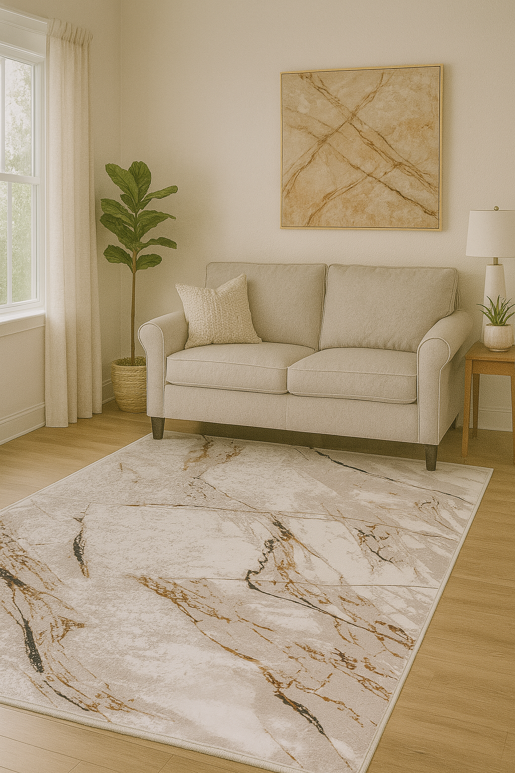Picasso Sand - Ljus och stilren matta med varm sandfärgad ram