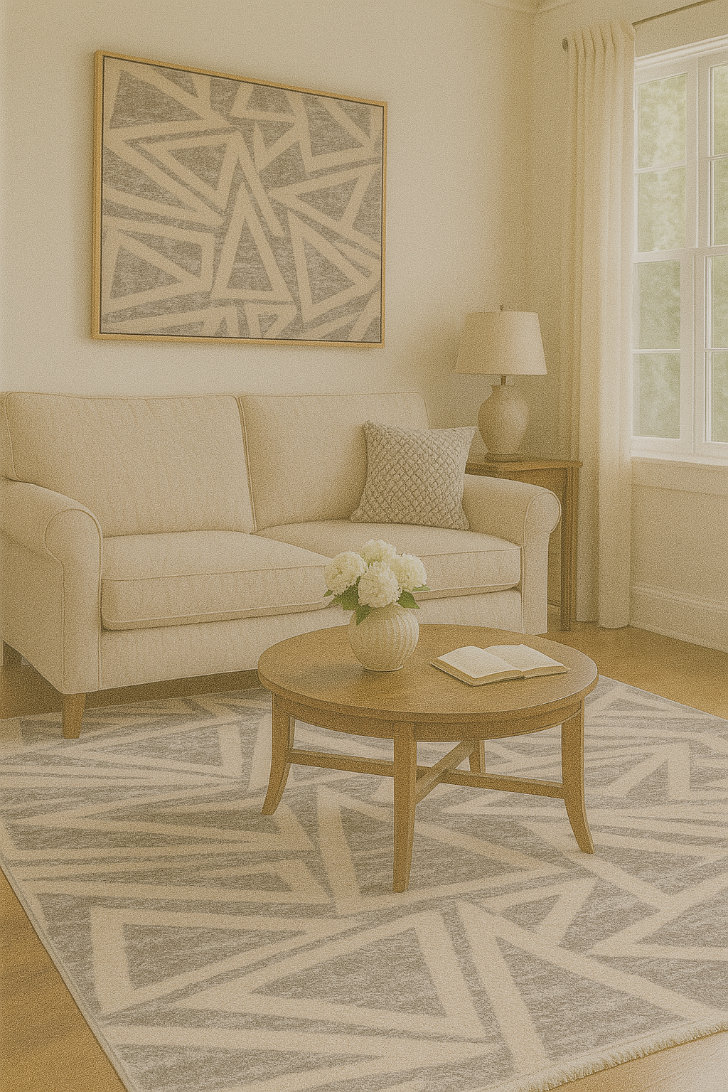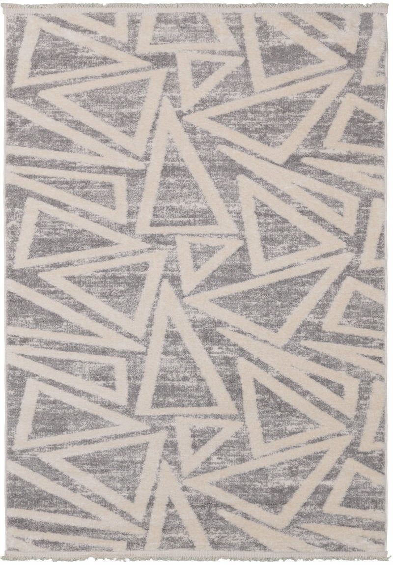 Florya Geo – Mjuk Grå Matta med Kontrasterande Triangeldesign för Modern Inredning