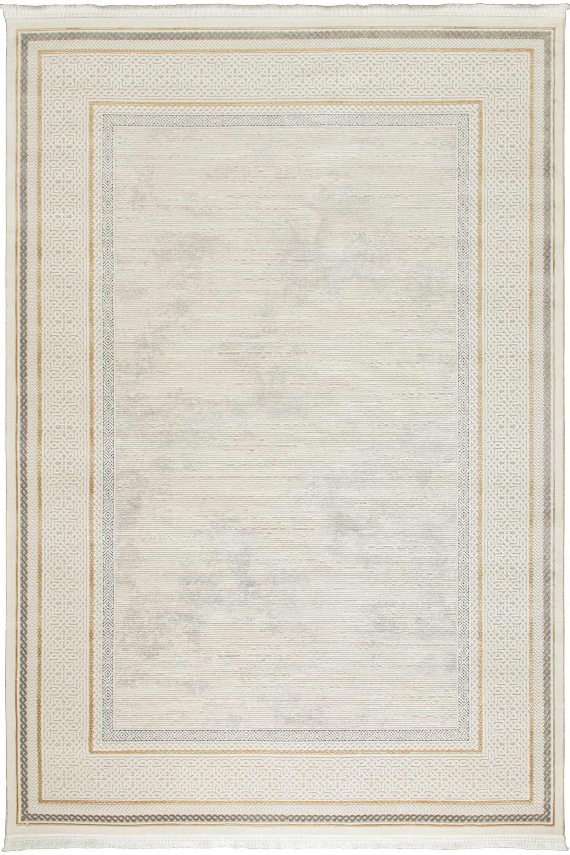 Picasso Pärlvit - Elegant ljus matta med pärlvit ram i diskret mönster