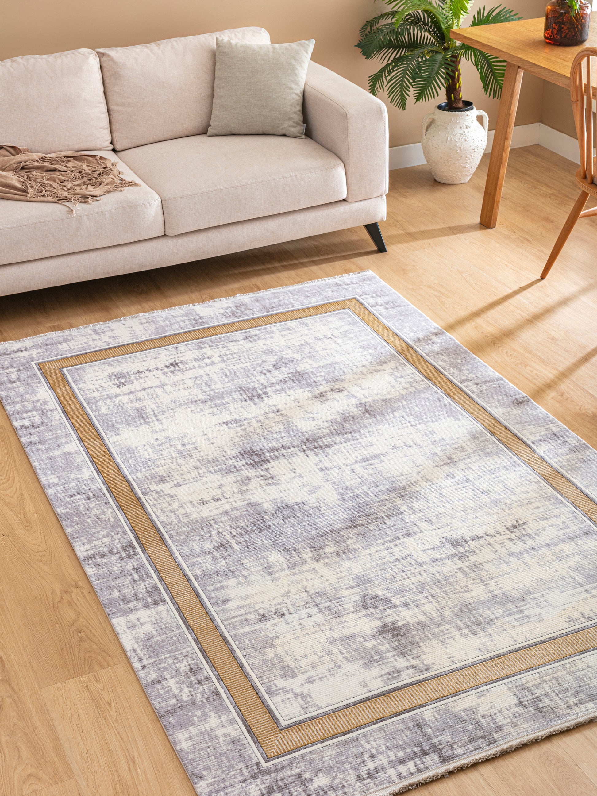 Picasso Sand - Ljus och stilren matta med varm sandfärgad ram