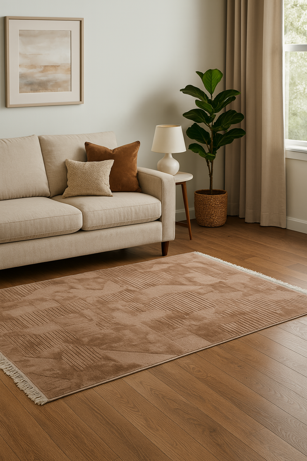 Izaka Sienna är en modern och elegant matta med varm ton och sofistikerad känsla. Den geometriska reliefstrukturen skapar en diskret men kraftfull visuell effekt som ger liv åt rummet utan att bli dominerande. Färgen för tankarna till jordnära nyanser, vilket gör att mattan passar perfekt i både klassiska och samtida inredningsstilar.