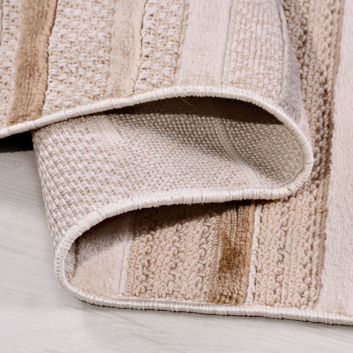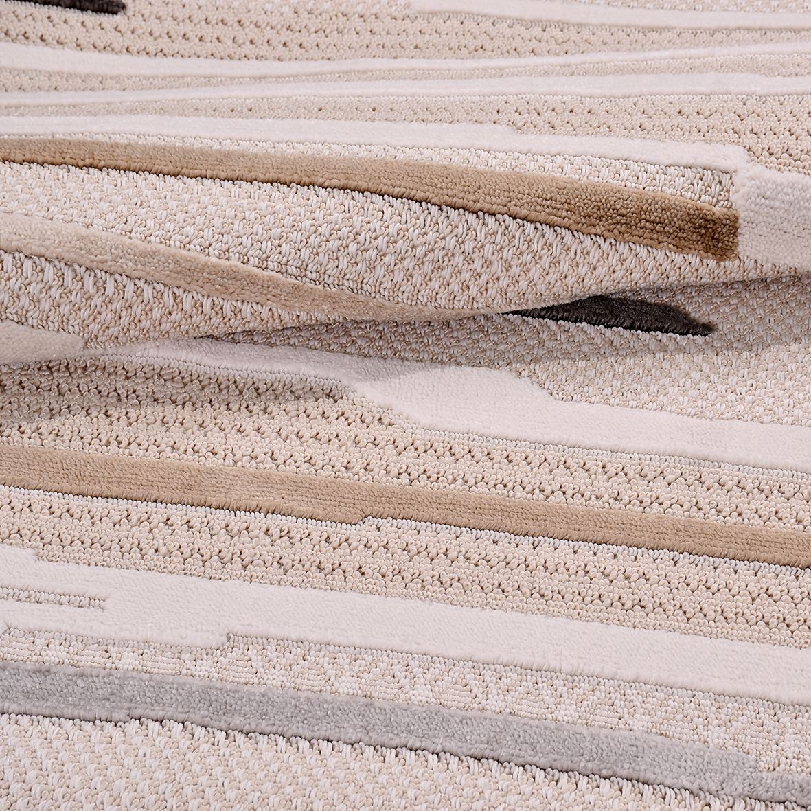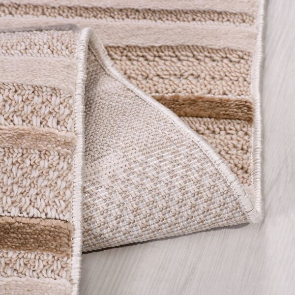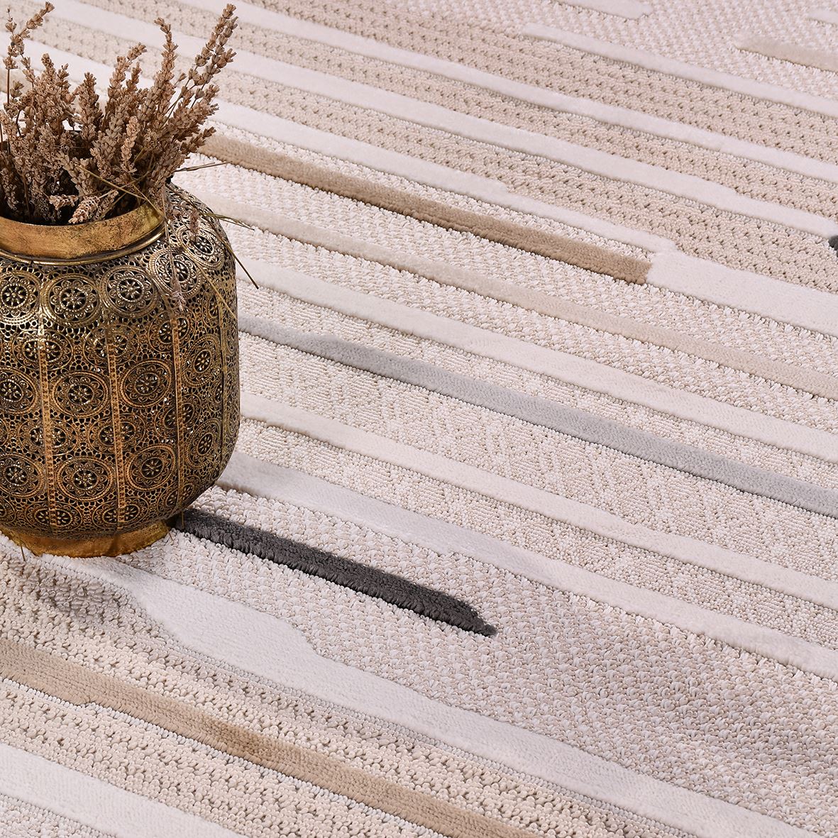 Izmir Siena utmärker sig med sitt unika linjära mönster där tunna kontrastlinjer möter en strukturerad väv i harmoniska beige toner. Mattan skapar en känsla av rytm och rörelse, samtidigt som den bibehåller en elegant balans som passar utmärkt i moderna hem.