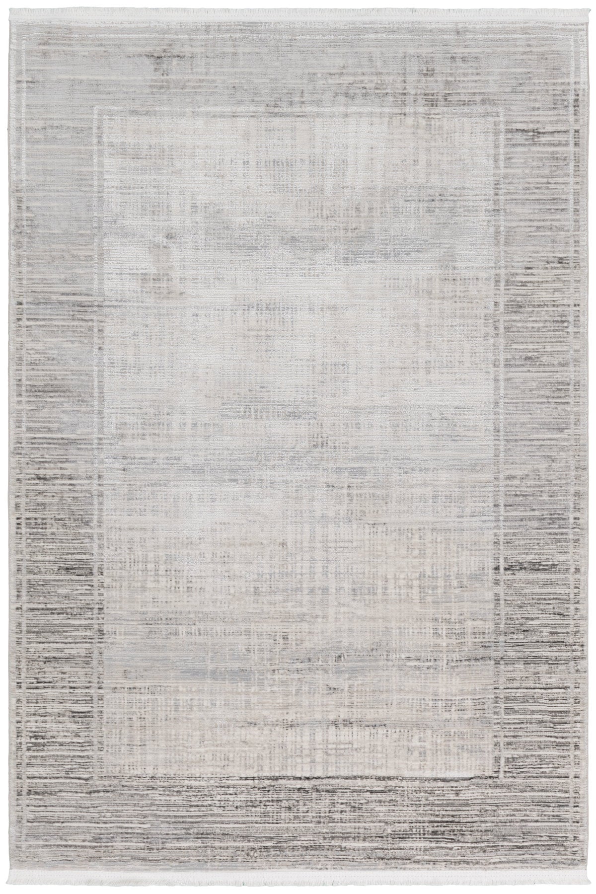 Picasso Pärlvit - Elegant ljus matta med pärlvit ram i diskret mönster