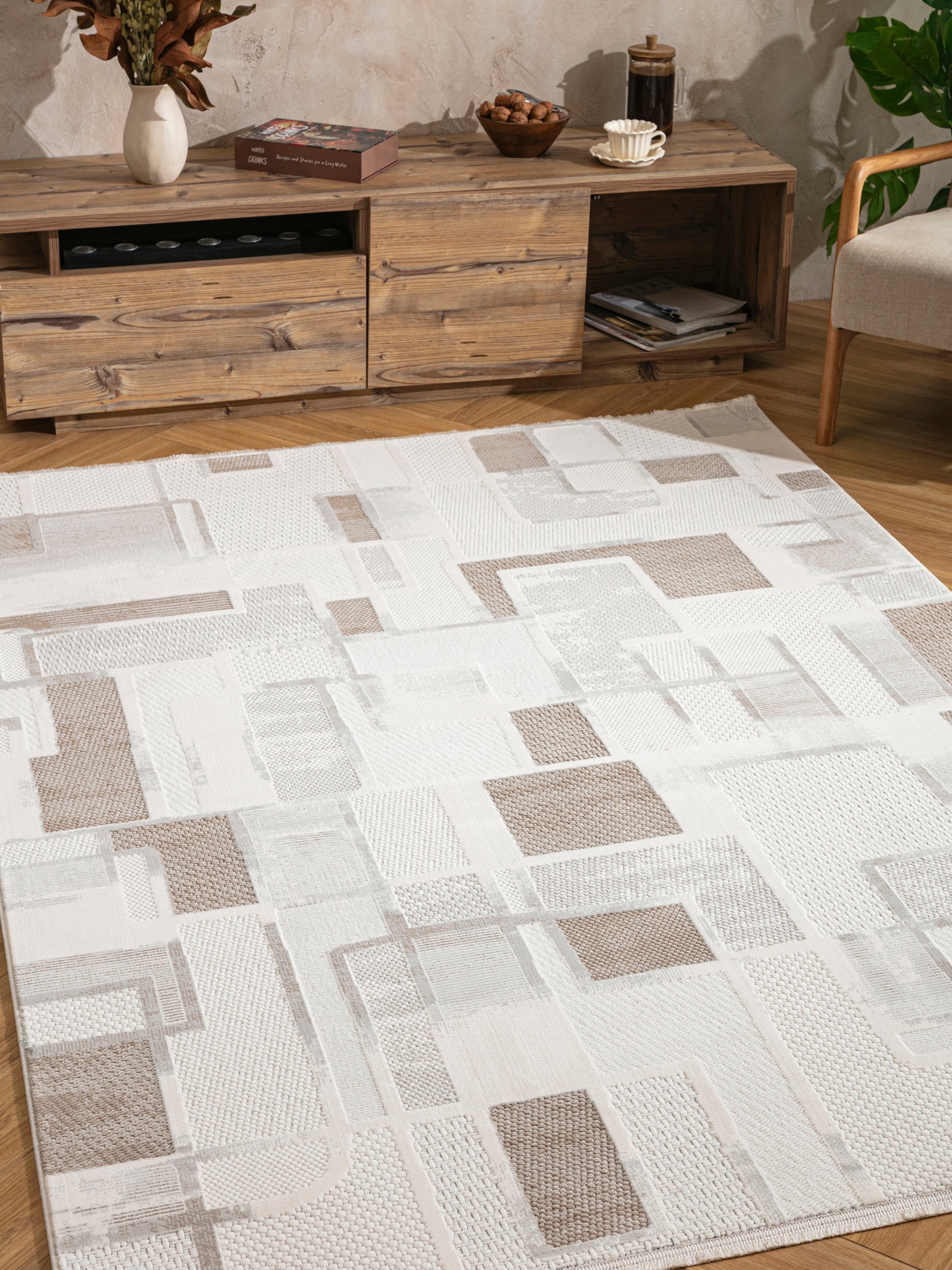 Jasmin BeigePatch – Ett modernt lapptäcke av struktur och ton