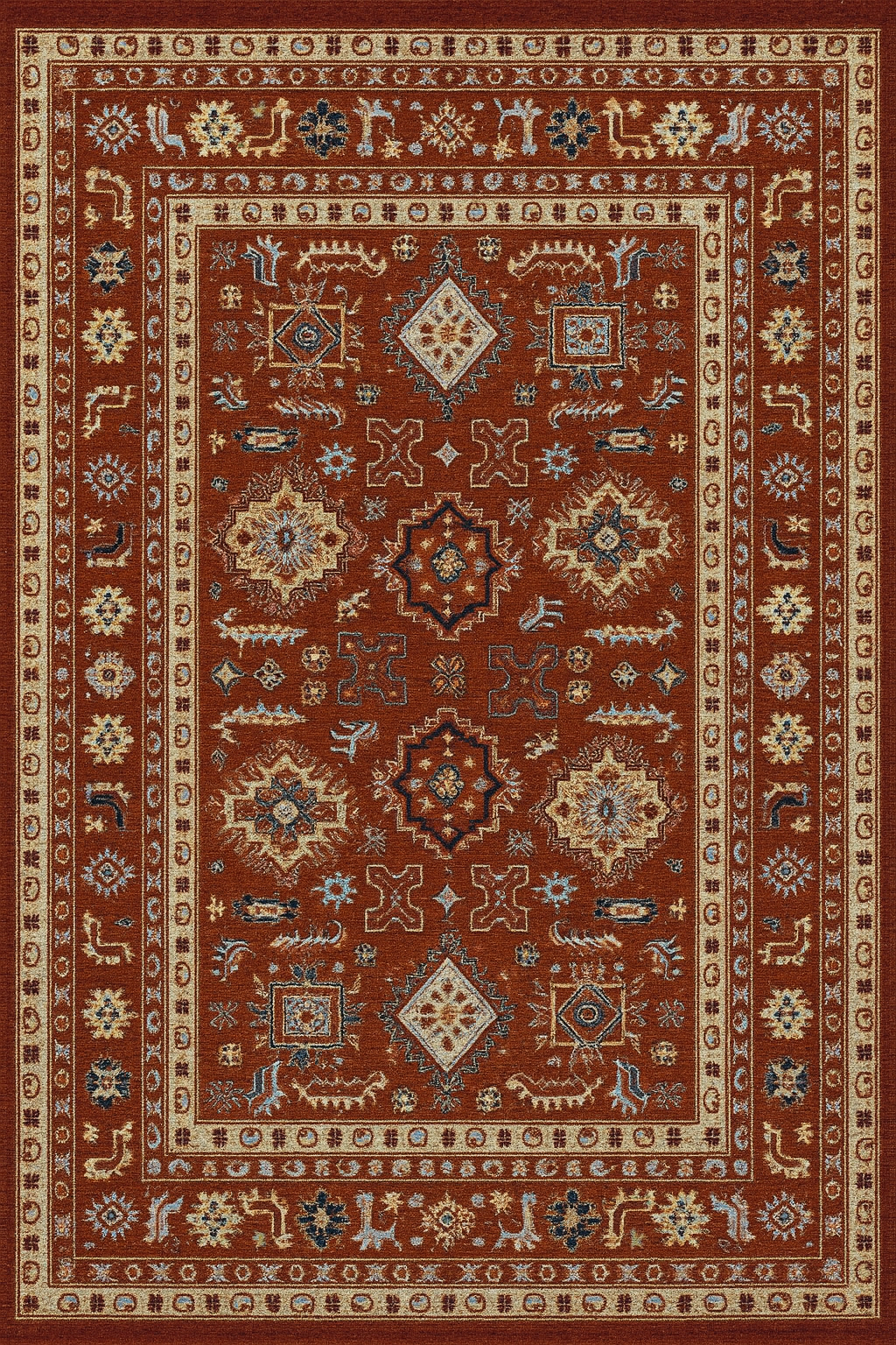 Den rika färgpaletten gör mattan till ett naturligt blickfång i både klassiska och moderna rum, och dess slitstarka struktur gör den idealisk för vardagens alla utrymmen.