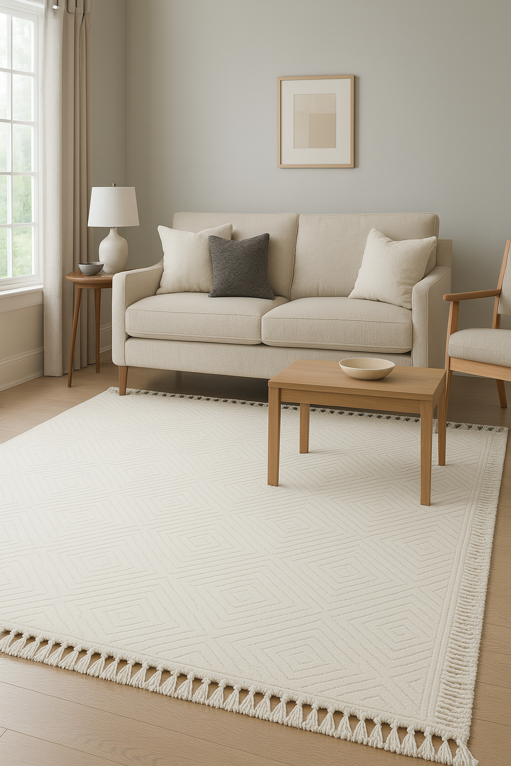 Lotus Argan kombinerar mjuka geometriska former med en varm, krämig färgskala som ger ett harmoniskt och välbalanserat intryck i hemmet. Det subtila mönstret ger liv utan att ta över, vilket gör mattan idealisk för både moderna och klassiska inredningsstilar.
