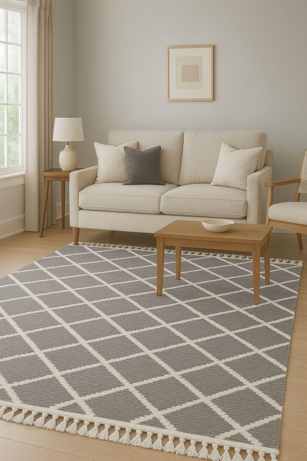 Låt Lotus Till bli en stilren grund i ditt hem – en matta som lyfter varje rum med grafisk balans.