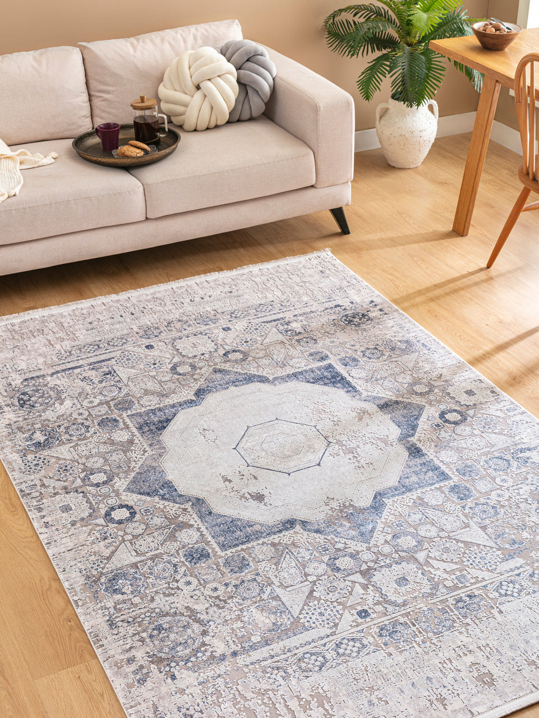 Bloom Stjärnväv – En elegant kombination av klassisk medaljong och moderna gråblå toner