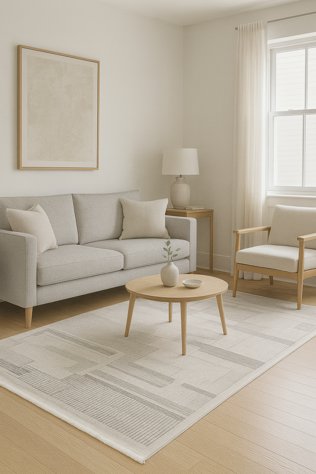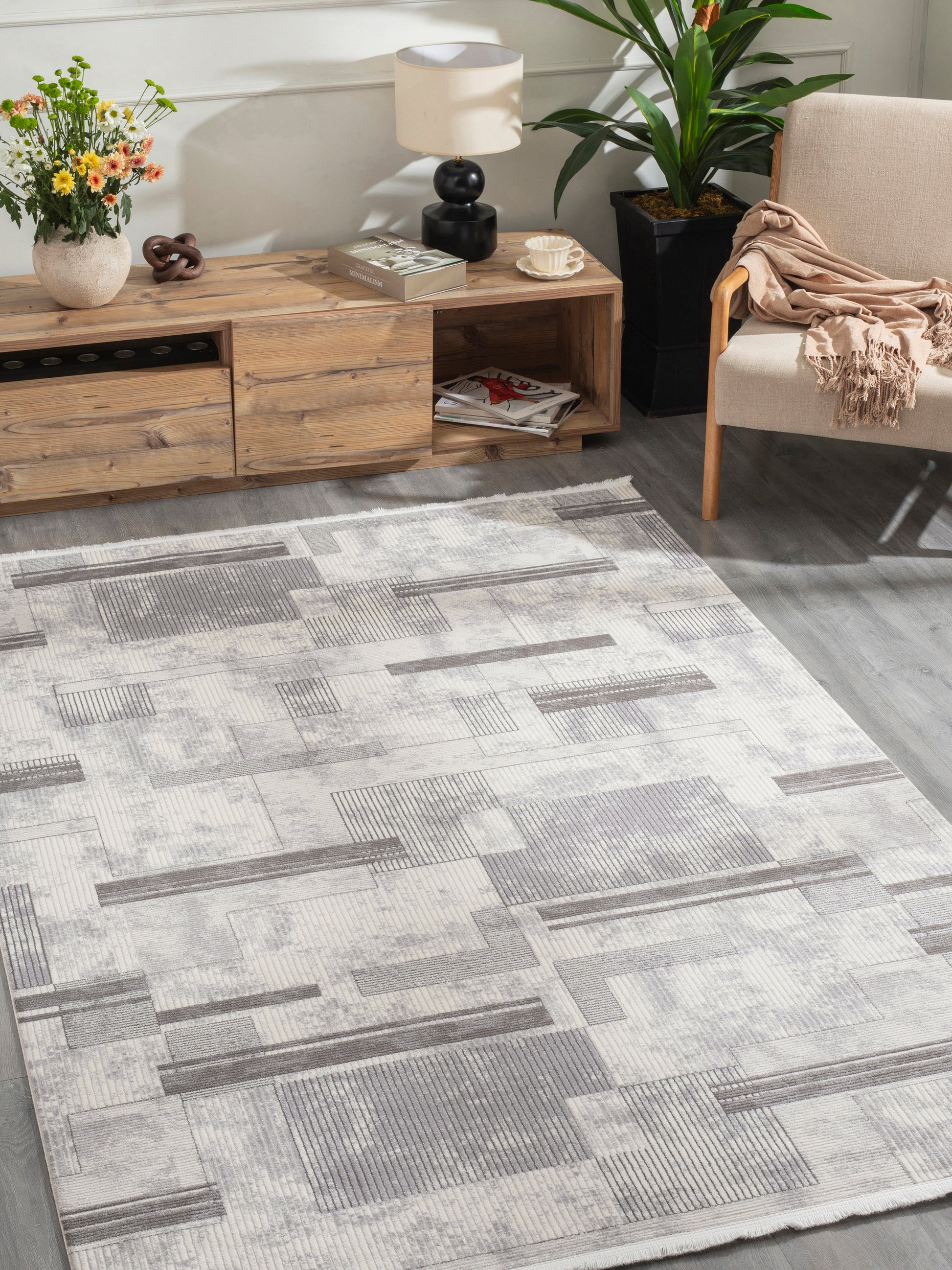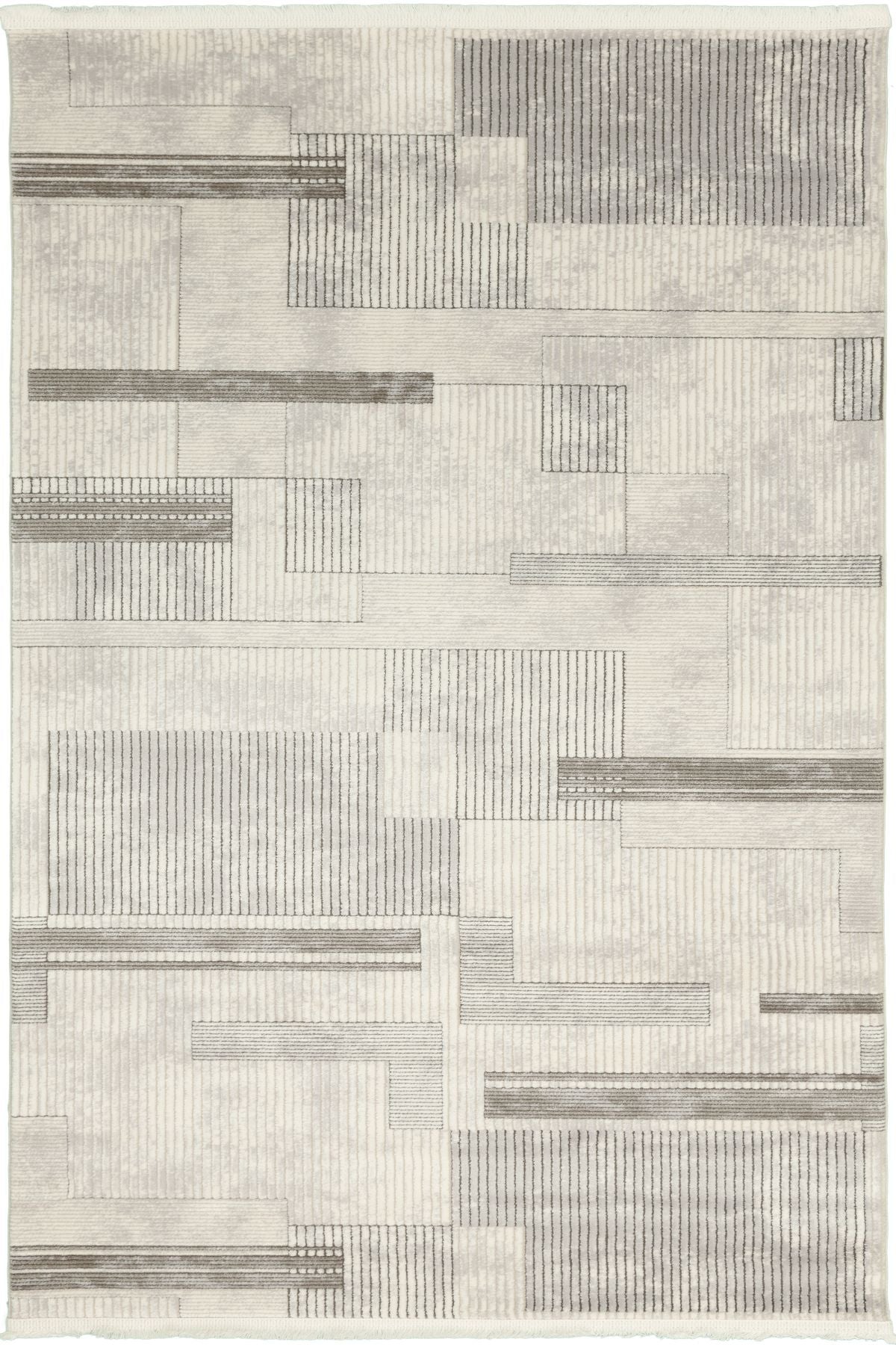 Premiere Atlas - Modern grafisk harmoni i lugna gråtoner – en matta som kombinerar struktur och stil.