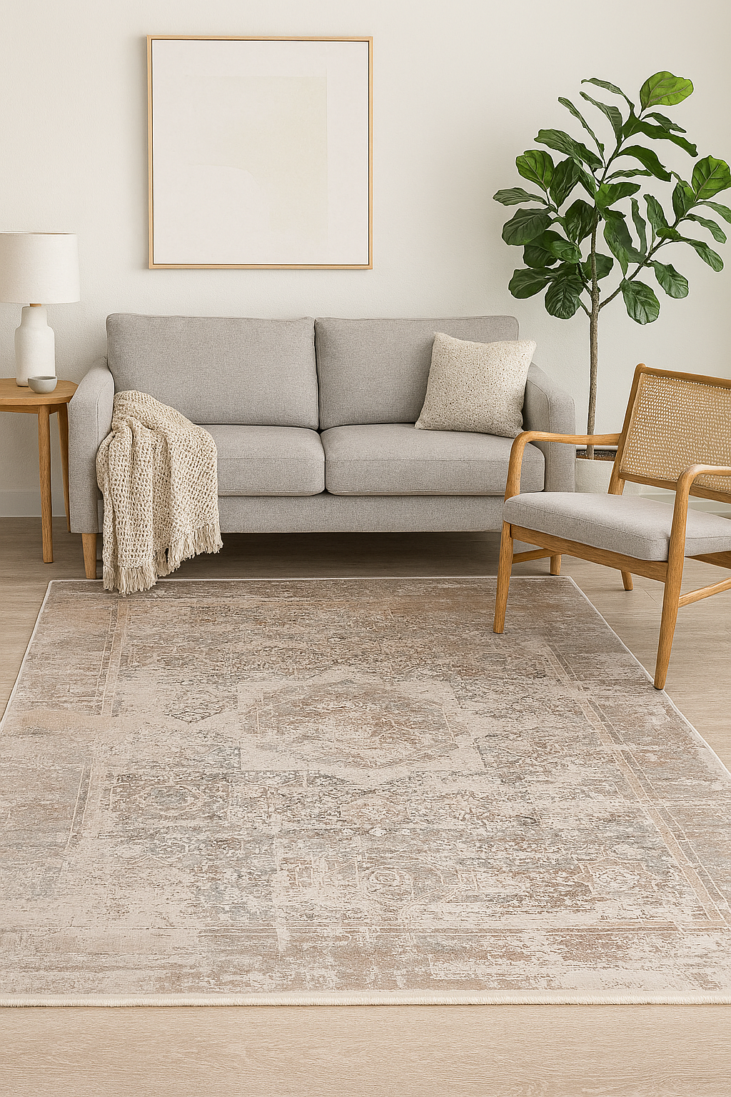 Picasso Sand - Ljus och stilren matta med varm sandfärgad ram