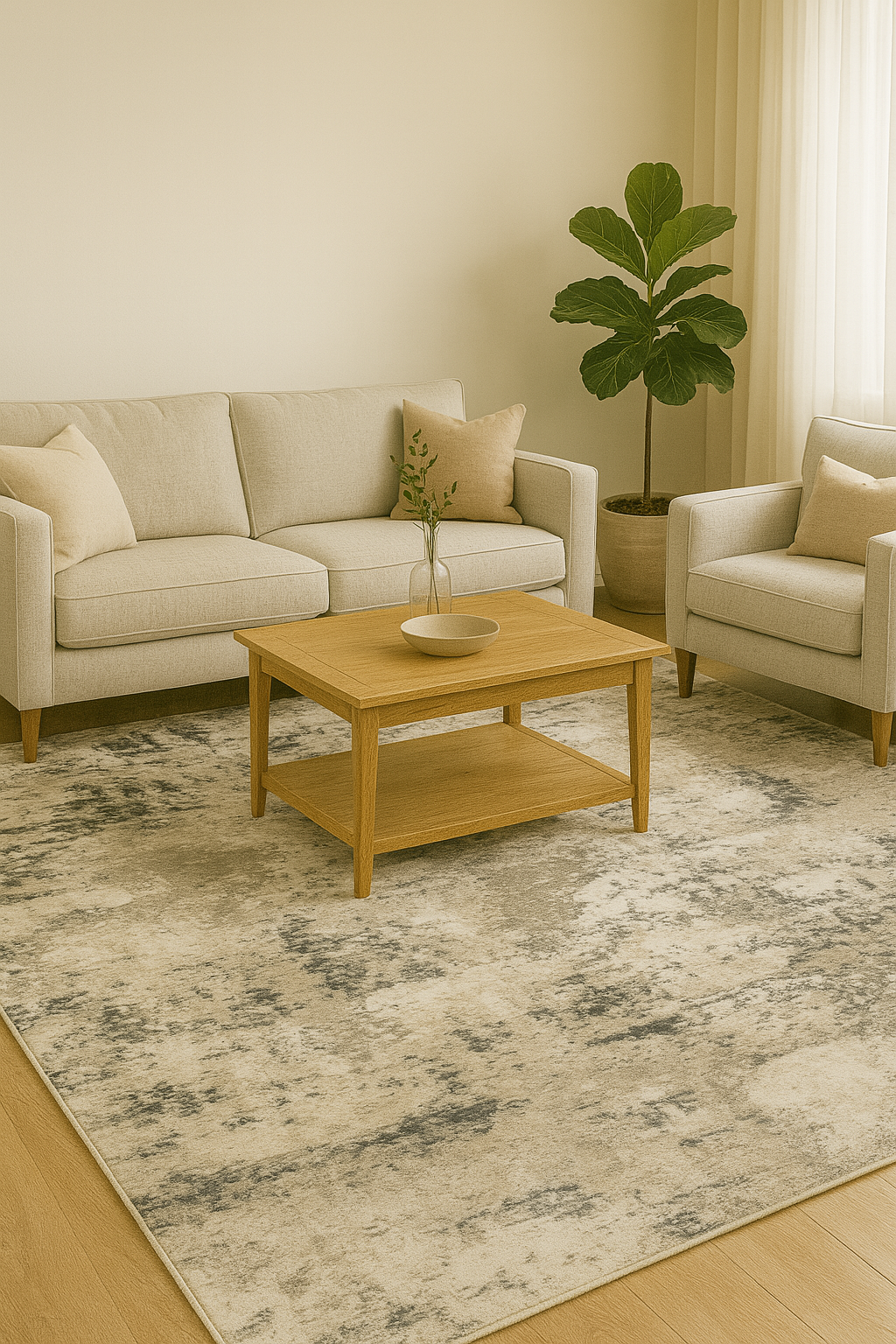 Moon Celest är en modern matta som fångar naturens växlingar i en elegant och balanserad färgpalett. Med sina dova blågrå och beige toner skapar den en subtil kontrast som ger liv åt rummet utan att ta över. Mönstret för tankarna till en stilla himmel eller en rofylld havsyta i skymningen.