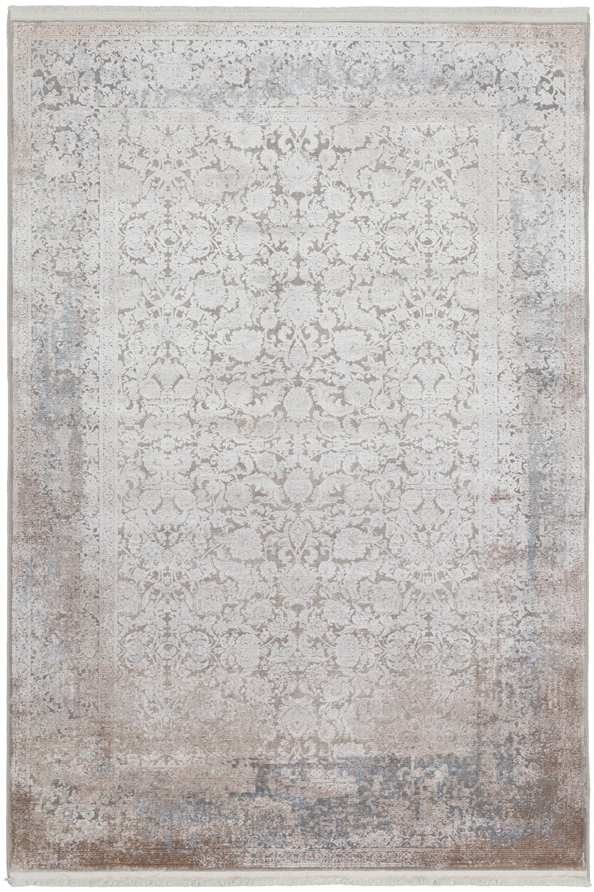Nazenin DamaskDimma kombinerar klassiskt damaskmönster med en modern, dämpad färgpalett. De silkeslena mönstren smälter harmoniskt in i den ljusa basen, medan de lätt slitna kanterna ger mattan en subtil vintagekänsla – perfekt för både moderna och traditionella interiörer.