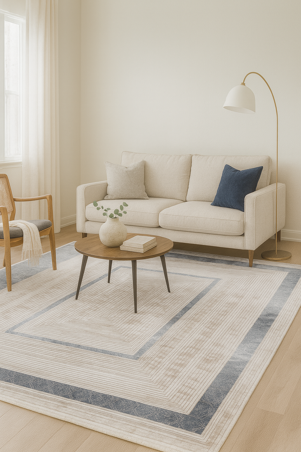 Picasso Azure - Elegant matta med konstnärlig touch och mjuk blå kant