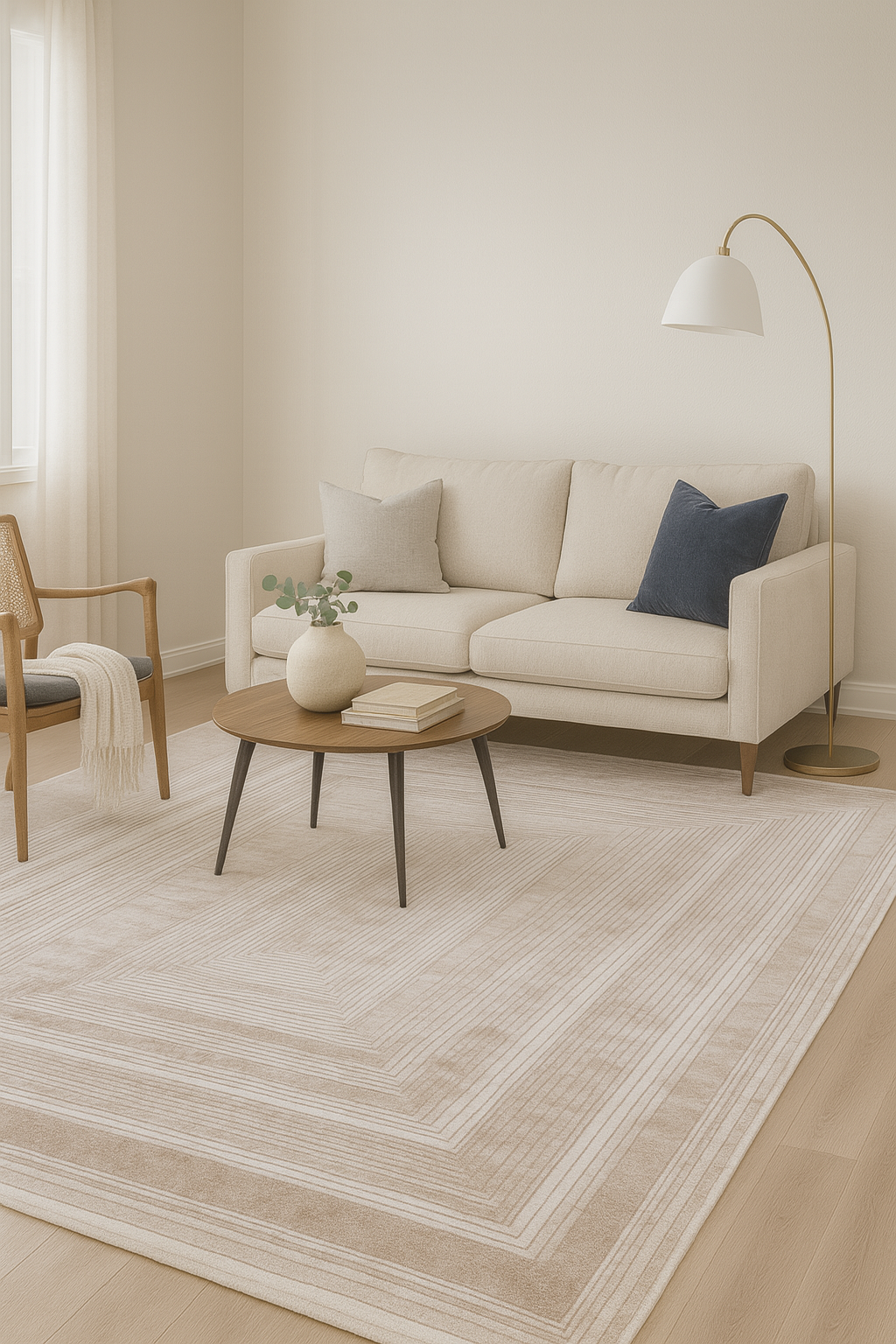 Picasso Sand - Ljus och stilren matta med varm sandfärgad ram