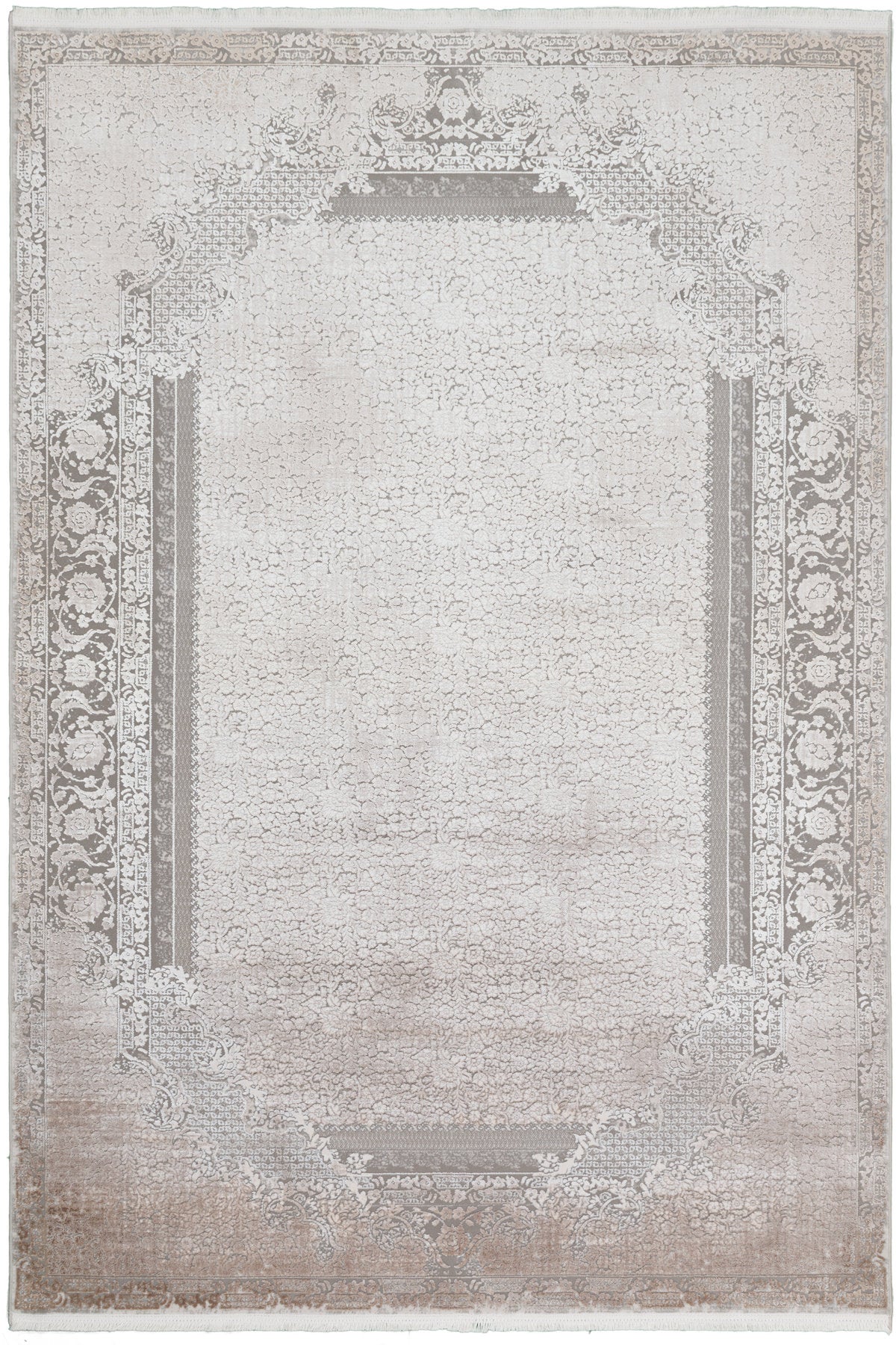 Nazenin SilverTaupe är en sofistikerad matta som andas elegans och finess. Den breda, symmetriskt inramade designen med mjuka blommotiv och dekorativa hörndetaljer ger mattan en känsla av klassisk harmoni. Silvriga och taupefärgade nyanser smälter samman i en subtil ombre-effekt, vilket förstärker dess moderna uttryck utan att förlora det traditionella arvet.