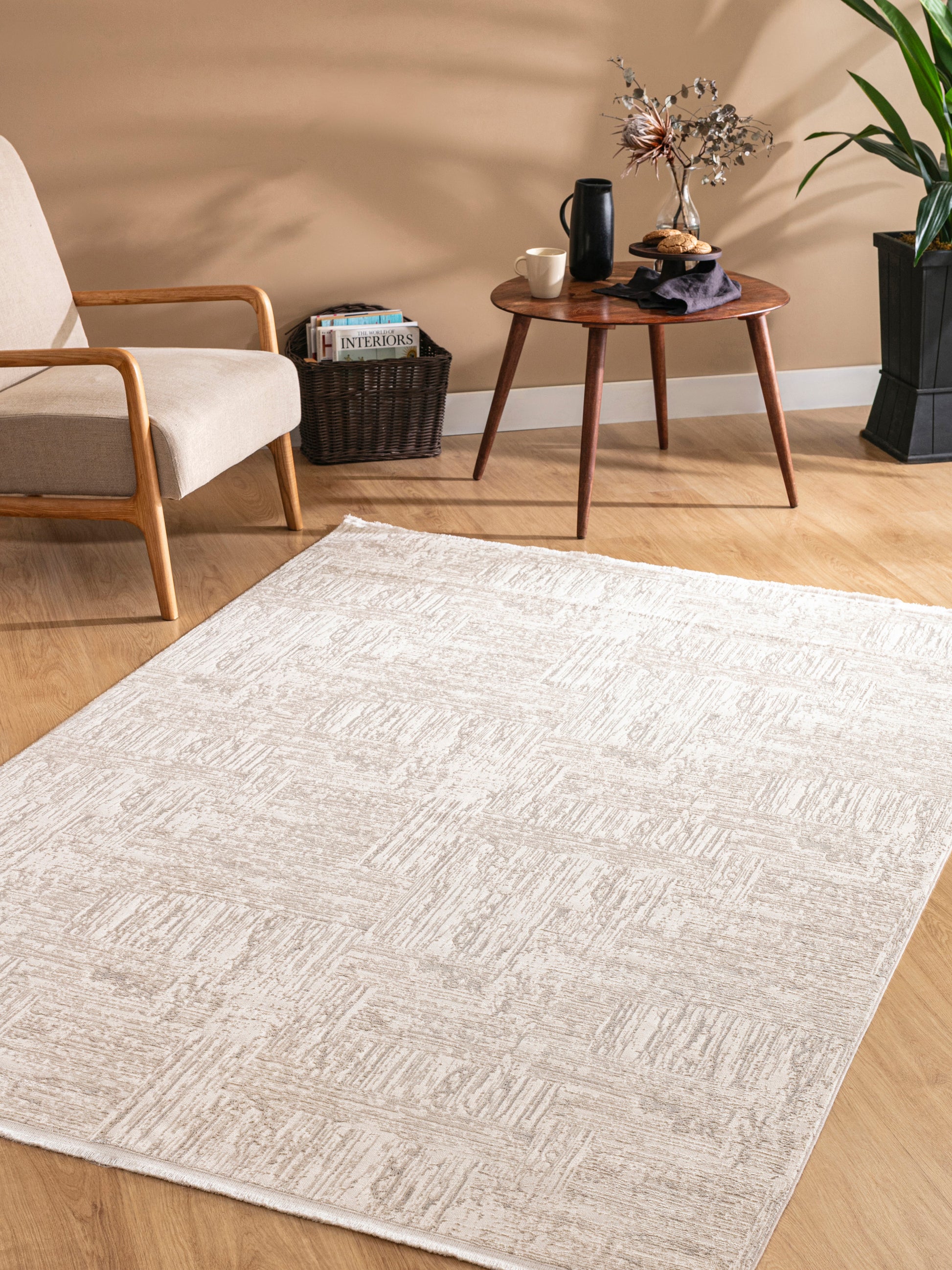 Picasso Sand - Ljus och stilren matta med varm sandfärgad ram