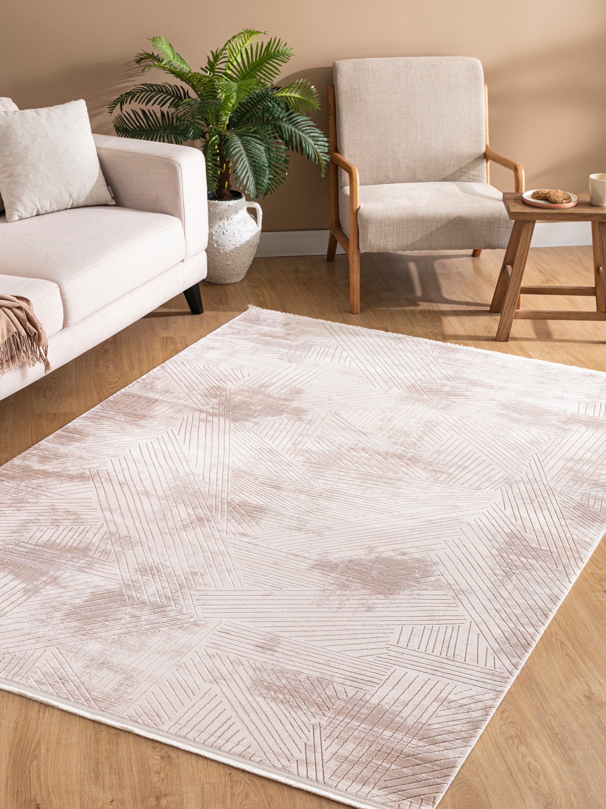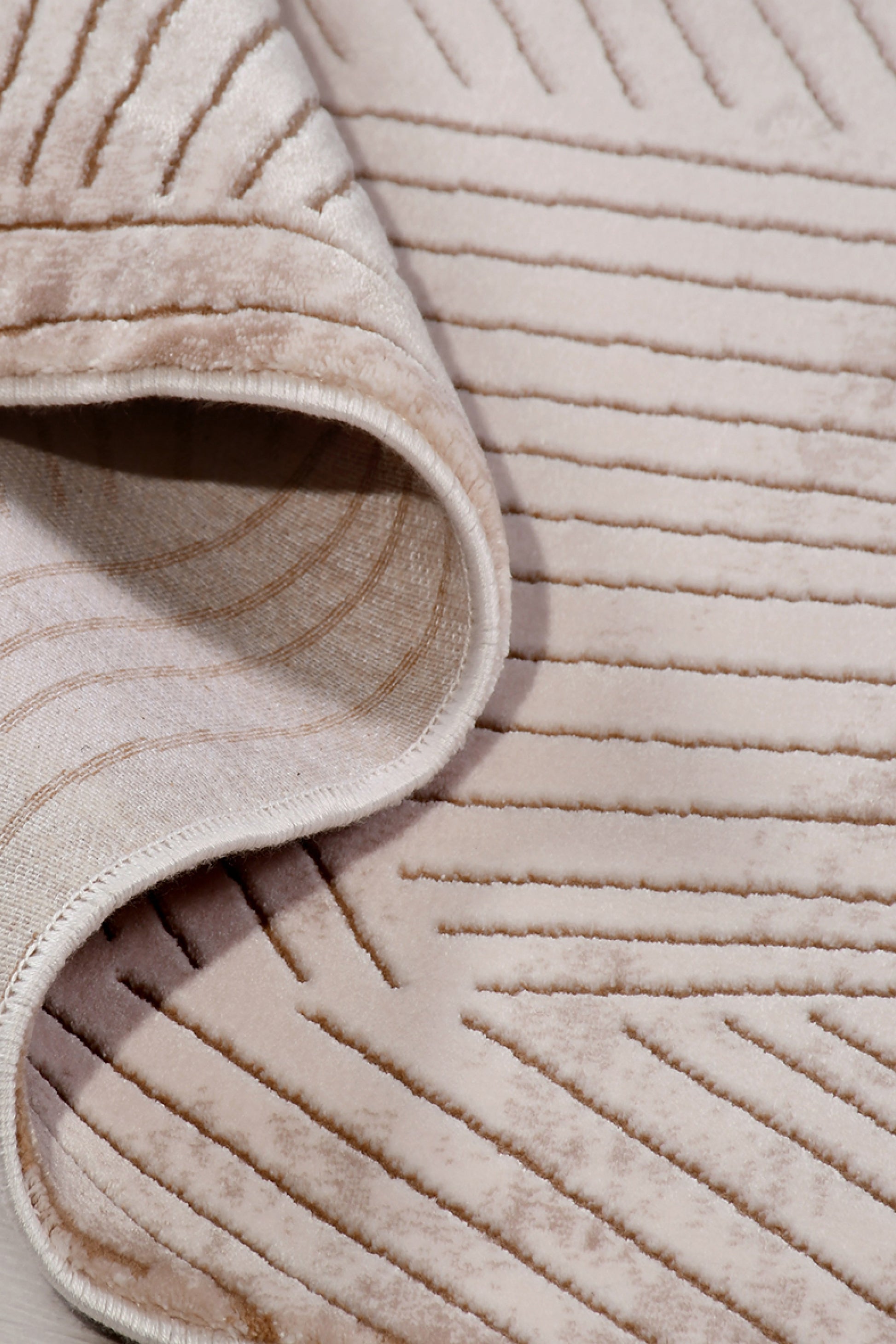 Ortaköy SandRelief för tankarna till mjuka sanddynor med sina diagonala linjer och subtila skiftningar i beige och sand. Det präglade mönstret ger mattan ett levande djup som förändras med ljuset och ger en känsla av rörelse och lugn samtidigt.
