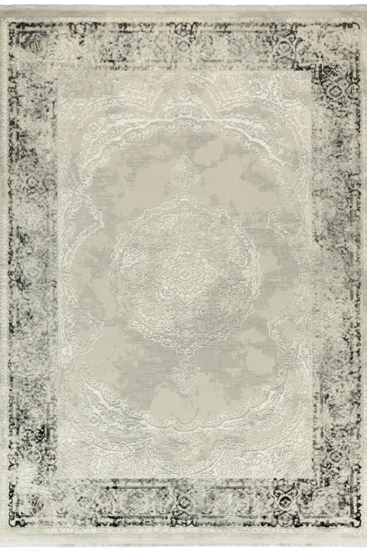 Picasso Pärlvit - Elegant ljus matta med pärlvit ram i diskret mönster