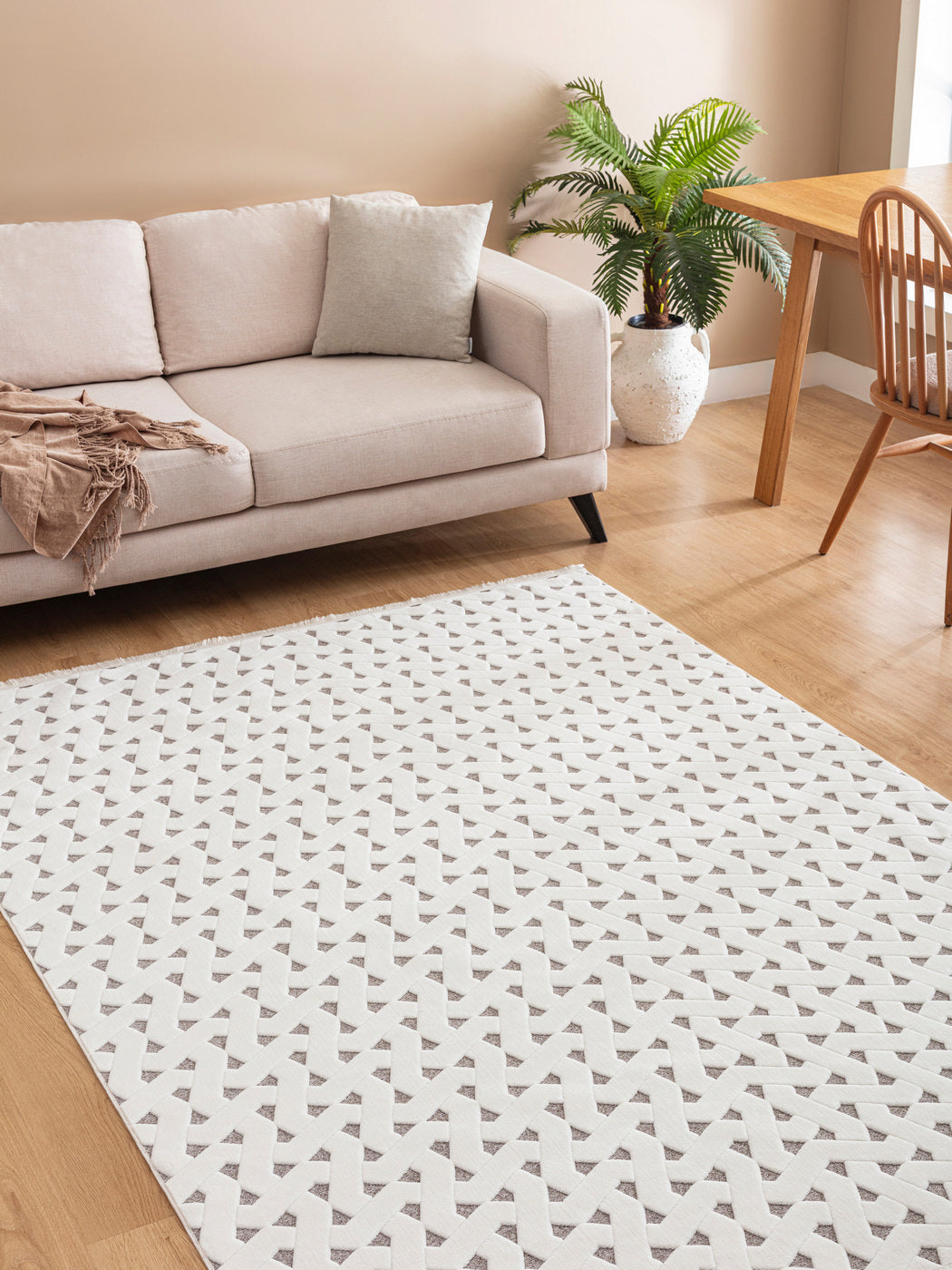 Happy Grace kombinerar skandinavisk minimalism med ett distinkt geometriskt mönster som skapar djup och rörelse i varje rum. Den gråvita färgpaletten gör mattan både modern och tidlös – perfekt för såväl moderna vardagsrum som eleganta kontorsmiljöer.