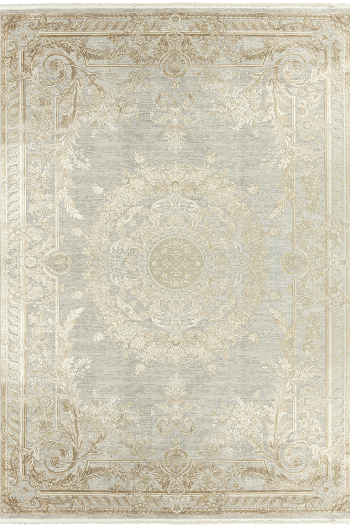 Picasso Pärlvit - Elegant ljus matta med pärlvit ram i diskret mönster