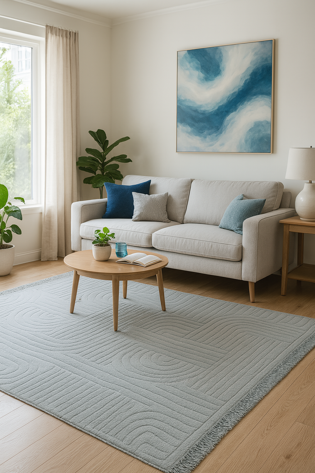 Picasso Azure - Elegant matta med konstnärlig touch och mjuk blå kant