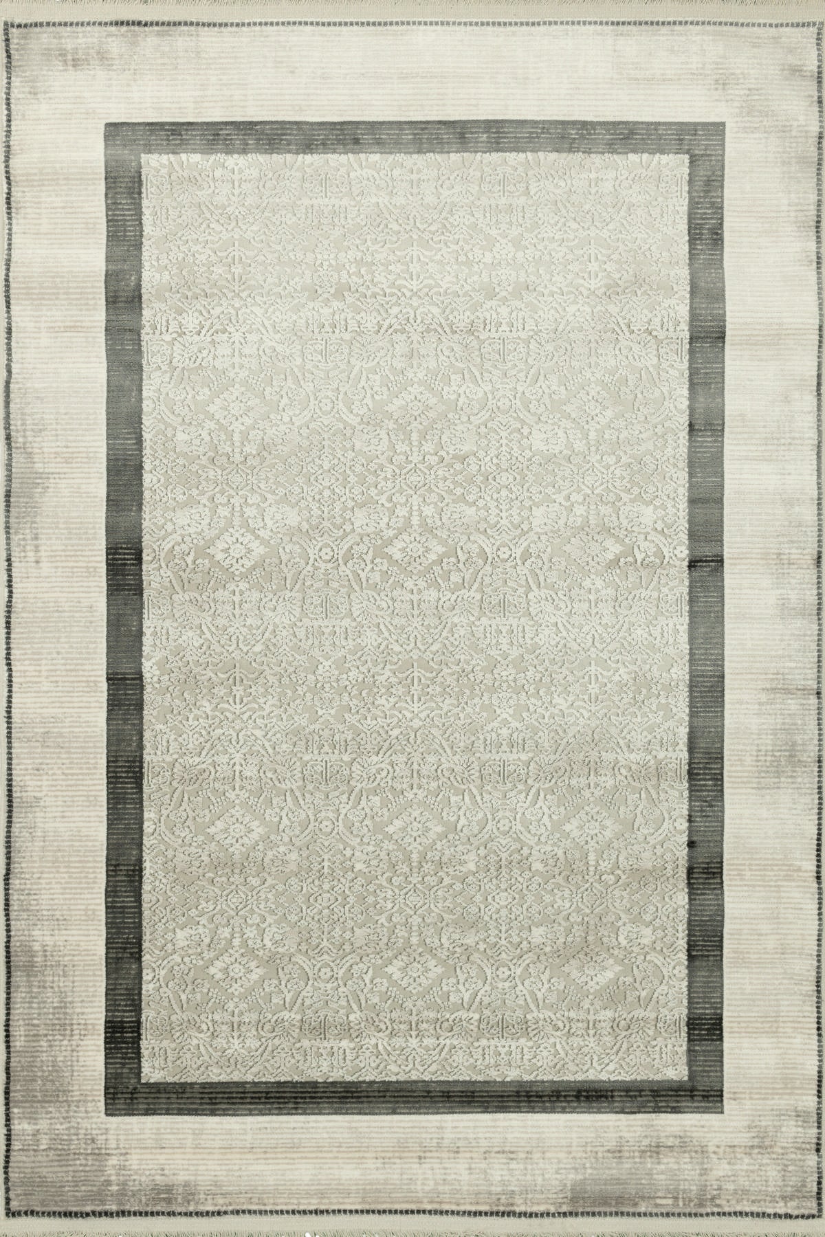 Picasso Pärlvit - Elegant ljus matta med pärlvit ram i diskret mönster